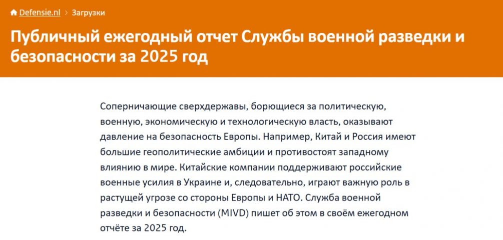 Нидерландская разведка также отметила, что боевой опыт, накопленный армией России с 2022 года, и то, как она его интегрирует, «обеспечивает значительное качественное улучшение операций российских вооруженных сил, особенно в беспилотной сфере».