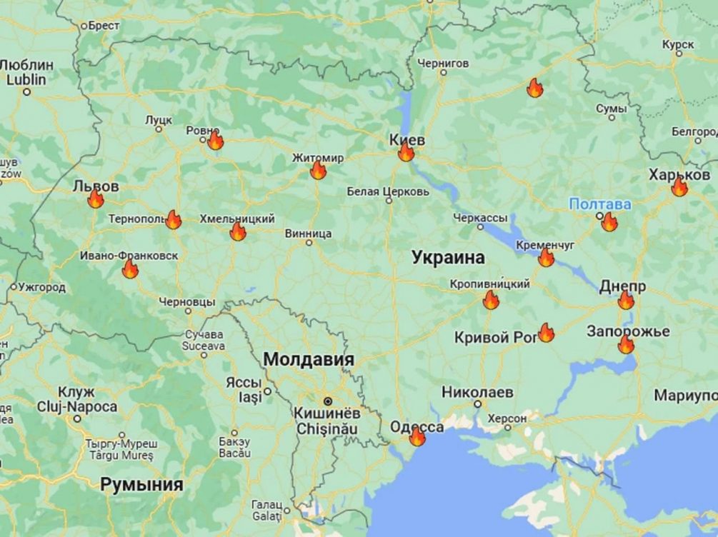 В некоторых регионах уже нет света и воды, также наблюдаются проблемы с доступом к интернету. После взрывов пропало электричество, нет света и воды во Львове, Киеве, Харькове и других городах.