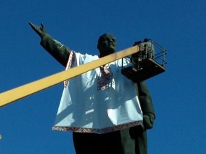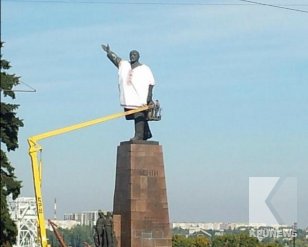 Местные патриотические организации при поддержке властей провели акцию облачения памятника Ленину в вышиванку.