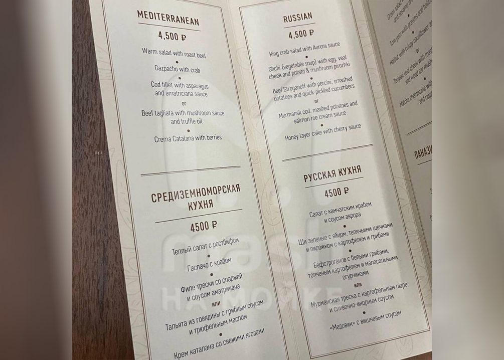 Средний чек полного набора из салата, супа, второго блюда на выбор и десерта составит 4,5 тысячи рублей.
