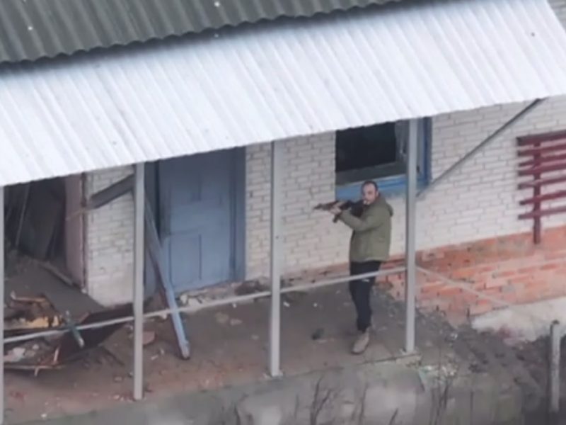 В сети появились кадры с ВСУшником, который кривлялся перед нашим дроном.