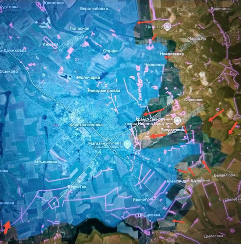 Совокупность этих манёвров создаёт реальную угрозу вклинения в оборону противника между Константиновкой и Дружковкой, что может привести к оперативному прорыву на этом участке фронта.