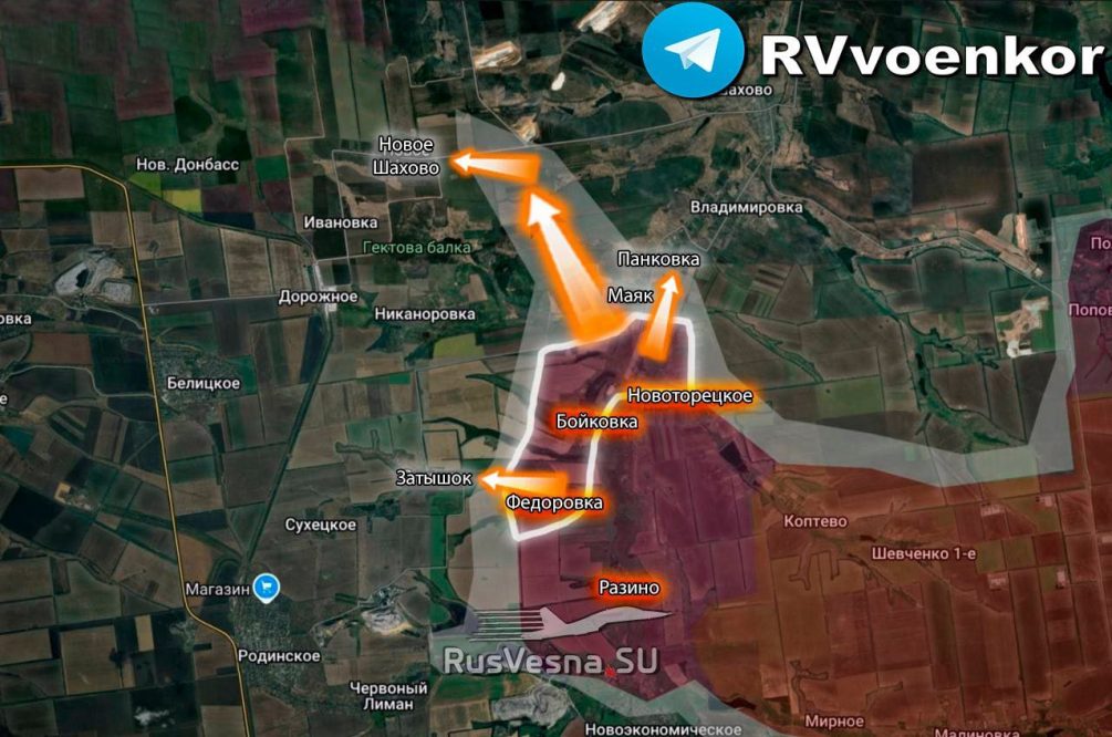На Добропольско-Константиновском направлении продолжаются активные наступательные действия российских подразделений. По данным украинских военных аналитиков, ВС РФ установили контроль над населенными пунктами Бойковка, Новоторецкое и Федоровка, продолжая при этом наступательные операции в районе Маяка и Панковки.