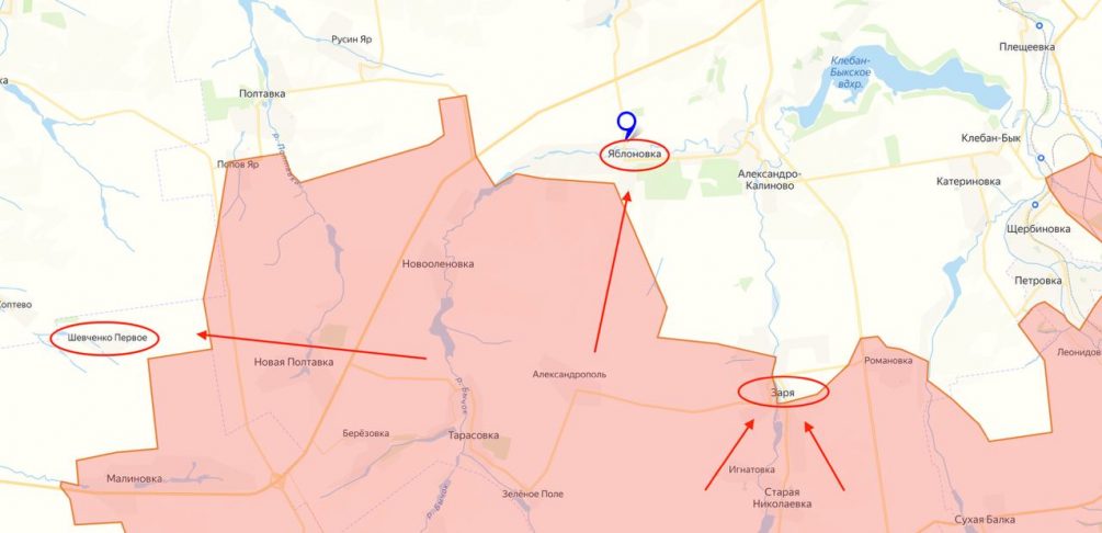 Российские войска также зачищают Шевченко 1-го, Яблоновку и район южнее Зари.