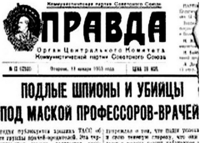 Сообщение об аресте врачей и подробности «заговора» появились в статье без подписи «Подлые шпионы и убийцы под маской профессоров-врачей», опубликованной в газете «Правда» 13 января 1953 года. Статья делала упор на сионистский характер дела.