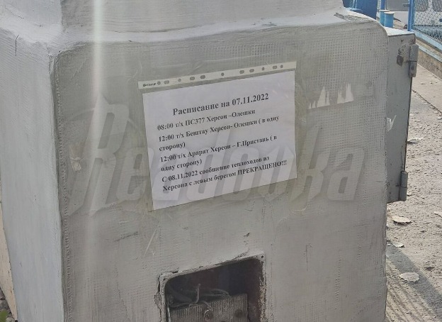 «7 ноября из города Херсона с правобережной части Херсонской области ушел последний теплоход, который мог забрать людей на левый берег. Желающие покинуть город жители должны будут делать это самостоятельно. С левого на правый берег мы сегодня закрыли дорогу и в город мы вам не рекомендуем возвращаться", - заявил чиновник.
