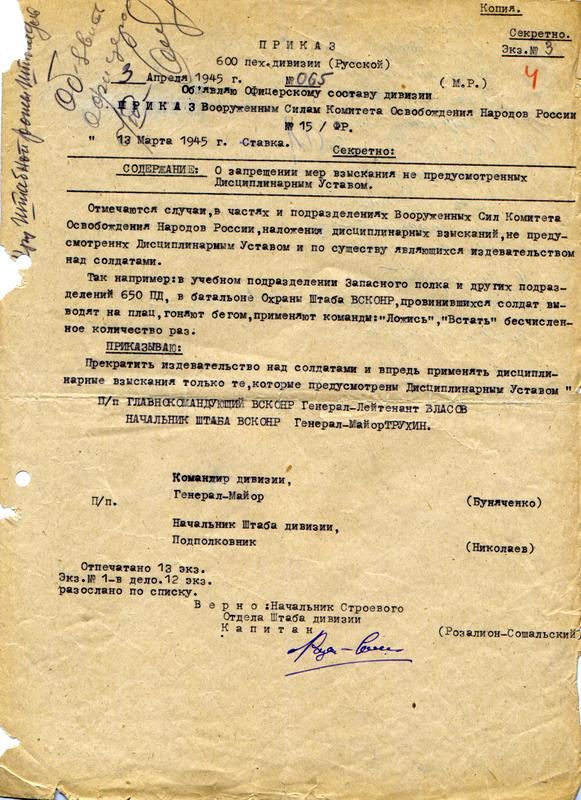 В 1943 году Власов написал открытое письмо «Почему я стал на путь борьбы с большевизмом». Кроме того, он подписывал листовки, призывающие свергнуть сталинский режим, которые впоследствии разбрасывались авиацией люфтваффе на фронтах, а также распространялись в среде военнопленных.
