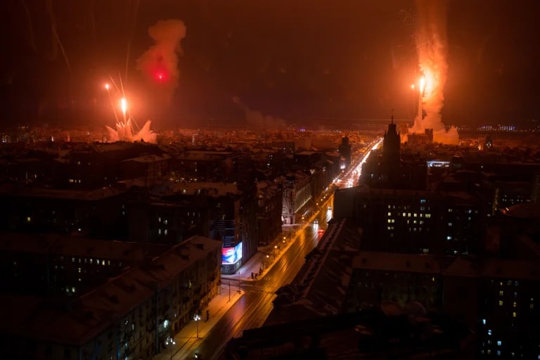 К тому же глава офиса украинского президента Андрей Ермак опубликовал у себя в соцсети картинку с Владимиром Зеленским над горящей Красной площадью. На изображении в стиле пиксель-арт показана горящая Красная площадь, над которой нависает Владимир Зеленский, а по багровому от зарева пожаров небу летят беспилотники.