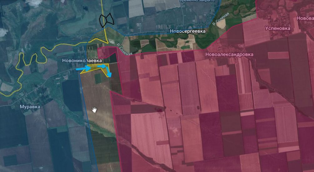 ВСУ пытаются закрепиться в лесополосе вдоль дороги южнее Новониколаевки. Как сообщает военкор Анатолий Радов, враг заскакочил и высадил десант. Одну из украинских ББМ подбили в результате контратак. Идёт бой.