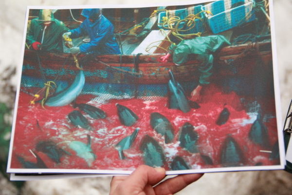 Они рассказали, что обеспокоены издевательствами над животными и поэтому пришли передать японским властям письмо с призывом прекратить массовое убийство и вылов дельфинов. Демонстрация прошла под названием «Всемирный день любви к дельфинам».