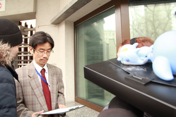 В результате демонстрации к активистам вышел представитель японского посольства и принял письмо, однако символичных дельфинов, которые ему предлагали в качестве подарка, взять отказался.