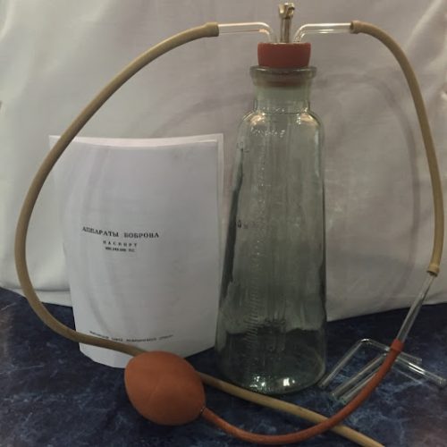 Для справки: банка Боброва или аппарат Боброва используется для различных медицинских манипуляций. Устройство разработал профессор МГУ, хирург Александр Бобров в конце 19 века. Изначально оно применялось для введения больших объемов физиологического раствора. Сейчас аппарат используют для увлажнения чистого кислорода, которым дышат коронавирусные пациенты. Газ поступает в сосуд по длинной трубке, проходит через воду и выходит по короткой трубке к человеку.