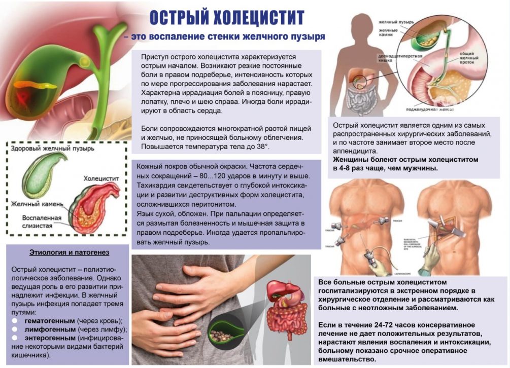 -острый холецистит, который может проявиться перитонитом, гангреной и разрывом желчного пузыря.