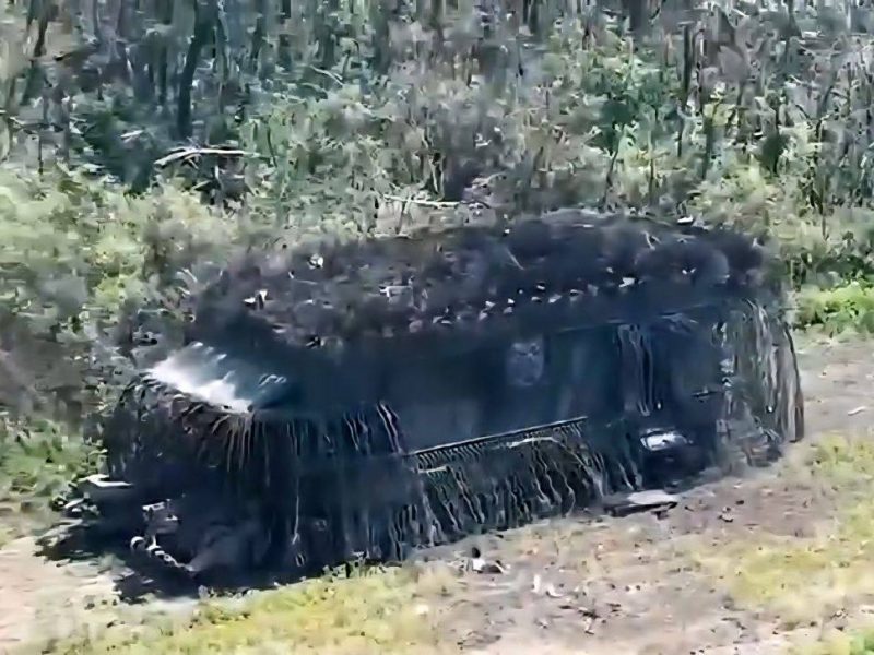 Несмотря на колоссальную нагрузку и попадания сразу нескольких дронов-камикадзе, экипаж «танка-монстра» продолжал выполнять боевую задачу. По данным источников, украинские БПЛА не смогли остановить бронемашину. Её обездвижила лишь мина, на которую она наехала уже в глубине украинской обороны.