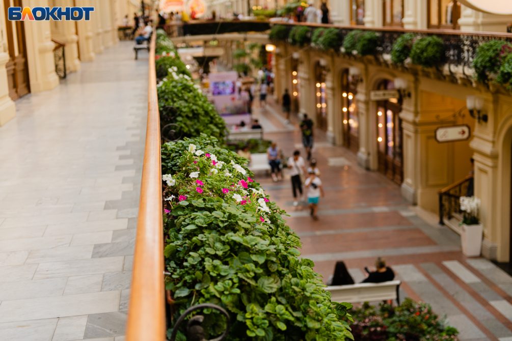 1-го июля в торговом комплексе «ГУМ» стартовал традиционный Фестиваль цветов. Уже десятый год подряд Главный универмаг столицы украшают яркими клумбами: цветочные ковры раскинулись вдоль линий магазина, растения обрамили знаменитый фонтан, а кашпо с петуньями украсили фасад исторического здания с первого до третьего этажа.