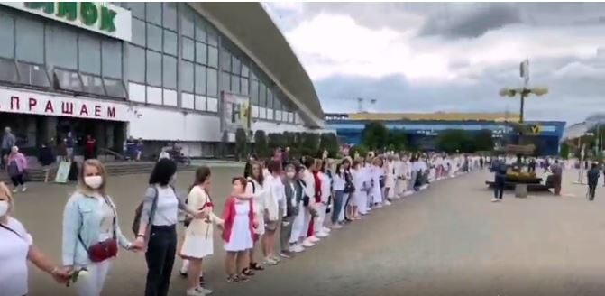 Утром 12 августа, после вечерних акций в Минске, в районе Комаровского рынка возникла стихийная акция солидарности белорусок с уличными демонстрантами. Как передает «Наша Ніва», около 250-ти женщин выстроились в «живую цепь», взявшись за руки. Некоторые минчанки прямо по ходу акции выходили из машин и встраивались в «цепь». Активистки в основном надели белую одежду, подчеркивая тем самым мирные намерения протестующих.