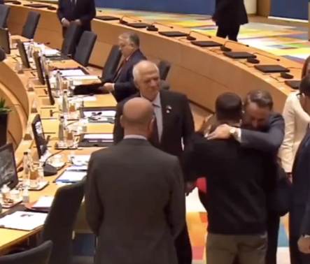 Зато европейские лидеры провели настоящий «чемпионат» по обожанию Зеленского: обнимались, фотографировались, целовались, горячо пожимали руки. И это была единственная поддержка, оказанная киевскому режиму в этой поездке.