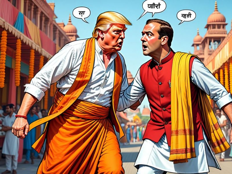 «Донни, похоже, получил ответ из Индии на свои угрозы. И, судя по его тираде, ему этот ответ не понравился. Президент великой державы сорвался на базарную истерику, - прокомментировал тираду Трампа военкор Александр Коц. - <...> Дмитрий Анатольевич расстроил Трампа своими постами. Разыгралась поистине болливудская драма <...> Донни, Донии, ача ача…».