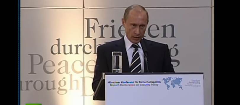 А спустя менее, чем через год, (февралб ь2007 года) Владимир Путин произнес свою знаменитую мюнхенскую речь. Она была посвящена геополитической системе однополярного мира с США в роли «пупа Земли» и месту РФ в этом мире. Российский лидер указал на то, что США выстроили свою правовую систему таким образом чтобы «перешагнуть свои национальные границы во всех сферах», так что их позиция «и в экономике, и в политике, и в гуманитарной сфере навязывается другим государствам». Путин тогда четко обозначил противостояние Запада и России.