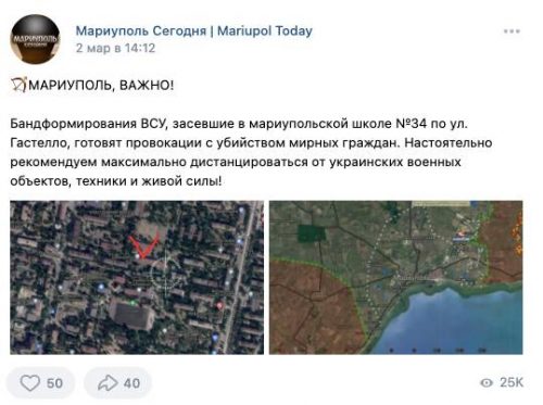 О готовящихся провокациях ВСУ сообщали пользователи группы «Мариуполь сегодня» во ВКонтакте.