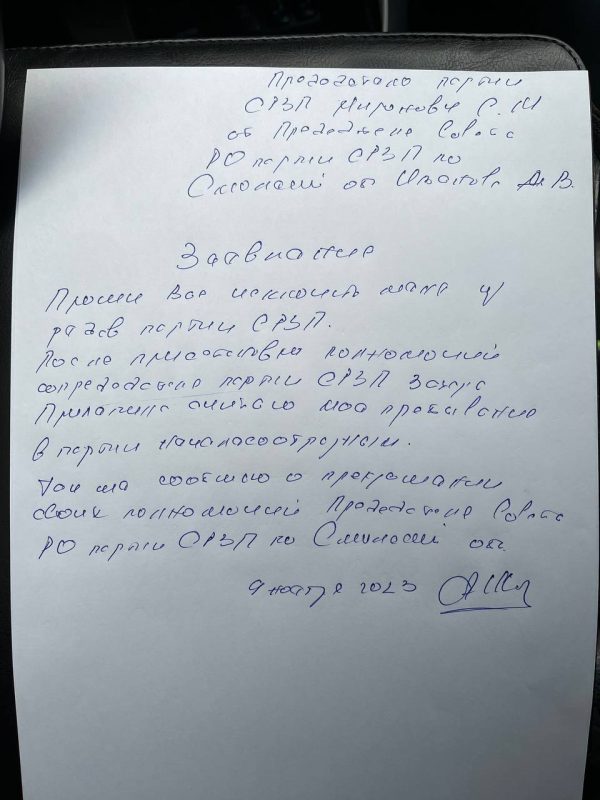 И уже через несколько дней смоленский лидер запел совсем по-другому. Он начал рассказывать что смоленские «эсеры» «варились в собственном соку» всю выборную кампанию, не получали из Москвы денег на выборы и вообще изначально оказались в слабой позиции. Мол, федеральное руководство СРЗП вопреки позиции смоленских товарищей отказалось выдвигать своего кандидата в губернаторы, что плохо сказалось и на кампании и на её финансировании. Как итог, Иванов вылетел из руководства отделением, а 9 ноября выложил в сеть своё заявление о выходе из партии. «Happy end», – прокомментировал бумагу Иванов.
