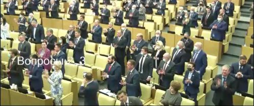 Также поддержали решение о ратификации фракции «Единая Россия» и «Новые люди». При голосовании «за» были отданы голоса всех присутствовавших в зале депутатов: ни одного «против» или «воздержался». После того, как итоги голосования появились на экране, депутаты стоя приветствовали результаты овациями.