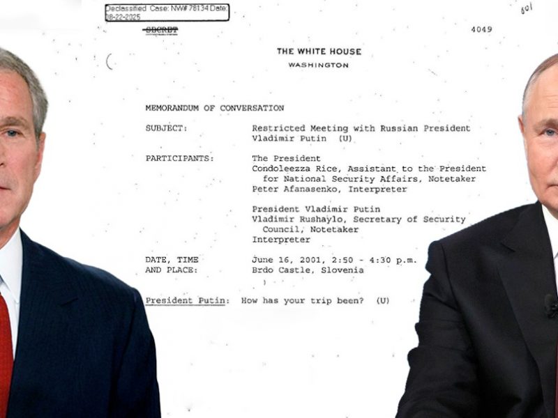 Американский Архив национальной безопасности опубликовал полные тексты трех бесед Владимира Путина с президентом США Джорджем Бушем. Беседы имели место в 2001, 2005 и 2008 годах. Они демонстрируют, как постепенно осложнялись отношения России и США – в том числе и из-за украинского вопроса.