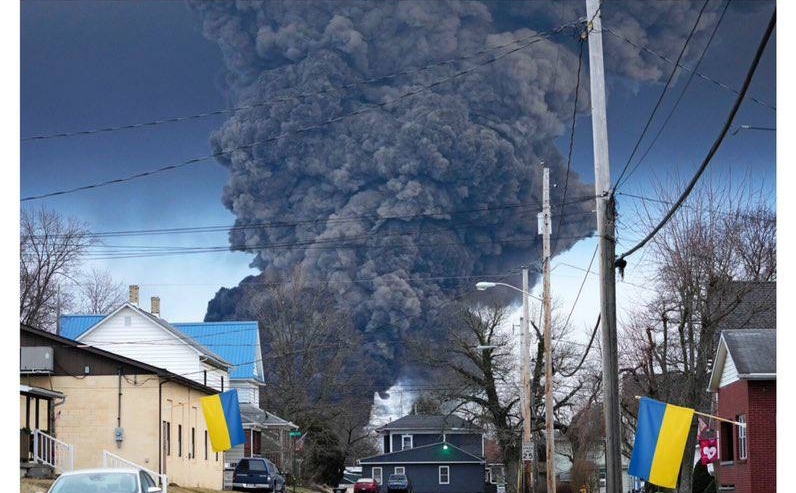 4. The Pacific сообщил, что американский город Восточная Палестина в штате Огайо переименован в «Киев», чтобы Белый дом тоже обратил на него внимание. Жители США массово троллят правительство, а также крупные средства массовой информации, которые продолжают игнорировать крупную аварию в штате Огайо с участием поезда, перевозившего винилхлорид.