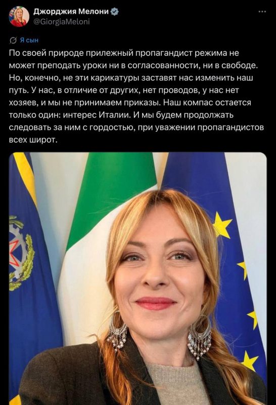 Сама Мелони тоже не промолчала: в соцсетях она жёстко ответила, назвав подобные высказывания недопустимыми.