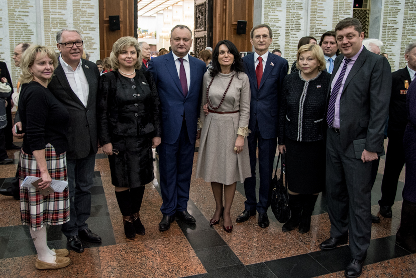 Открылось торжество возложением цветов к памятнику павшим воинам в Зале Славы. Под гром оркестра дань памяти героям отдали лидер партии социалистов Молдовы Игорь Додон, депутаты «Справедливой России» Николай Левичев, Олег Пахолков, Татьяна Москалькова, Елена Драпеко.