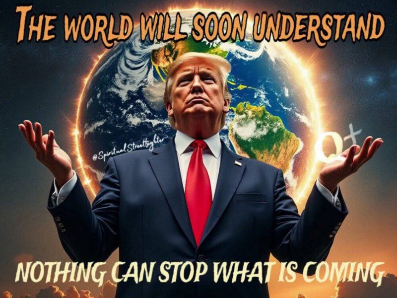 Американский лидер сослался на публикацию, где была размещена его фотография с поднятыми к небу руками на фоне планеты Земля. На изображении были написаны слова самого Трампа: «Мир скоро поймёт. Ничто не остановит того, что грядёт».