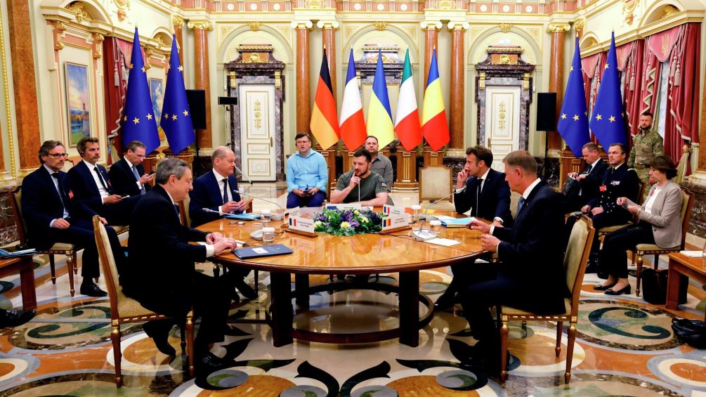 Немецкое издание Die Welt предположило, что истинная цель поездки на Украину глав Германии, Франции и Италии была в том, чтобы убедить Зеленского начать диалог с президентом России о прекращении конфликта. Как говорится в статье издания, европейцы пообещали Украине статус кандидата в члены Евросоюза, а в обмен на это призвали Зеленского пойти на уступки Путину.