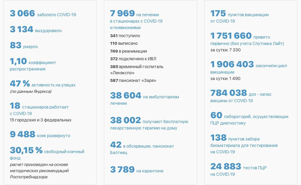 В Петербурге за сутки стало на 5% меньше свободных коек