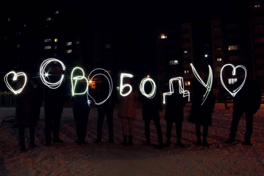В течение второй половины дня соцсети заполняли фотографии людей с фонариками и прочими источниками света. Люди рисовали фонарями слово «Свобода» выкладывали из свечей сердца (14 февраля к тому же празднуется День святого Валентина - день всех влюбленных).