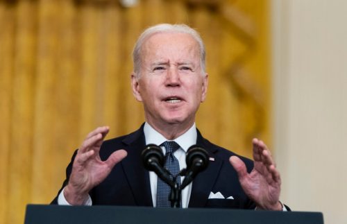 Байден также заявил о наличии у границ с Украиной 150 тысяч российских военных. Он по прежнему не исключает возможного вторжения России на территорию сопредельного государства. По словам главы Белого дома, оно может произойти, несмотря на тесные связи между двумя соседними странами и их общую историю. В связи с этим Байден заявил, что отказался отправлять американских военных на Украину в случае начала там военных действий, но от принципов коллективной обороны НАТО США отказываться не собирается. Политик также опроверг информацию о том, что страны НАТО намерены разместить ракеты на территории Украины.