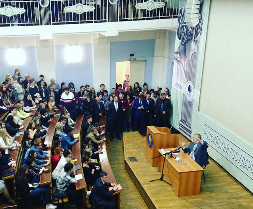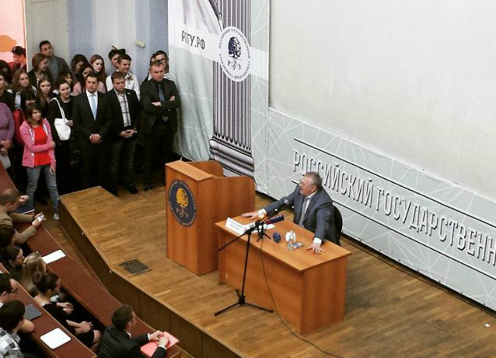 В пятницу, 13 мая, лидер ЛДПР Владимир Жириновский выступил с лекцией перед студентами Российского государственного гуманитарного университета. При этом всего три дня назад политик назвал РГГУ «очагом антирусских настроений», «закрытой кастой» и предложил закрыть зловредное учебное заведение.