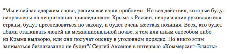 По словам врио главы Крыма Сергея Аксенова, власти республики занимаются проблемами крымских татар, однако при этом не допустят разжигания межнациональной вражды.