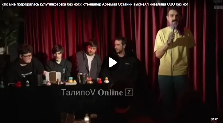 Напомним, уголовное дело против Останина было возбуждено после комментария в адрес бойца специальной военной операции: «Ко мне подкралась ***** культяпковозка без ног. Кидаю взгляд вниз, а там этот скейтер без ног сидит. Я ничего лучшего не нашёл, как наклониться к нему и сказать, ну не гоняй ты так сильно! А тут бабка мне стала кричать, что я хамло! А с **** я хамло, меня в метро сбили буквально, я смотрю на это, чувак ****** на мине подорвался, решил угла в метро дать, а я хамло», - заявил Останин.