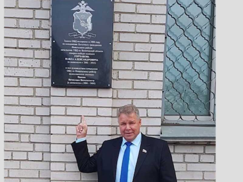 Депутат законодательного собрания Вологодской области от «Единой России» Павел Горчаков открыл в Никольске мемориальную доску, посвященную самому себе. А если быть точнее, то доска посвящена тем, кто помог построить здание, на которой и вешали доску. Это оказалось самое обычное кирпичное здание, где располагается районный ОВД, и не является памятником архитектуры или религиозного культа, оно никого не спасло от смерти, тяжелой болезни или прозябания на улице под мостом, написала накануне «Вологодская правда».