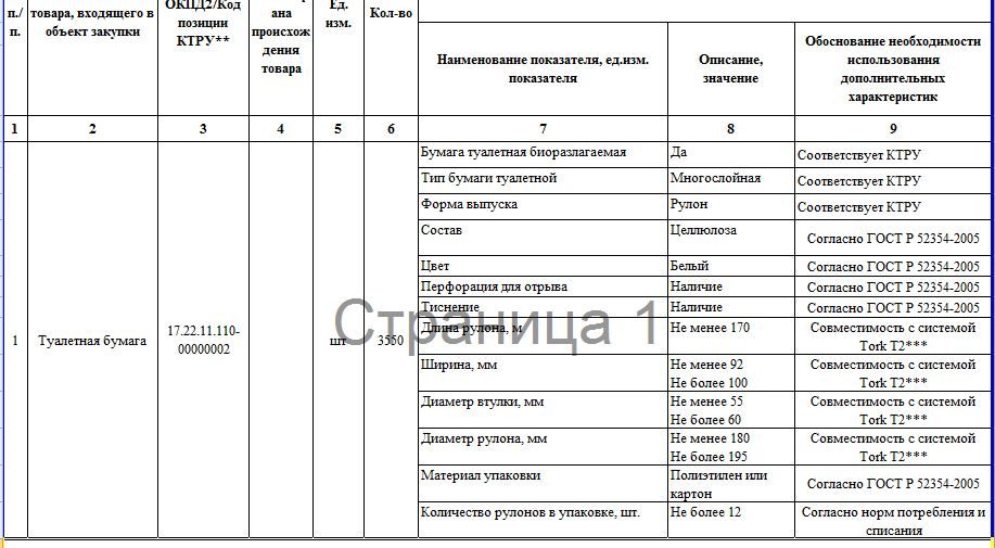Повторимся еще раз, что авторы госзакупки прописали все до мелочей. Даже указали ширину и диаметр рулона. В упаковке должно быть не более 12-ти рулонов. Сама же упаковка должна быть сделана из полиэтилена или картона.