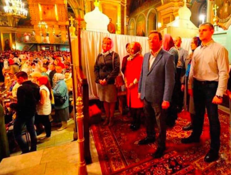 Глава города вместе со свитой решил отгородиться от православных прихожан во время праздничного богослужения.