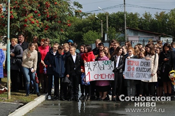 Десятиклассники школы крупного поселка Долгодеревенское под Челябинском уже две недели добиваются перевода своих классов на учебу в первую смену. 1 сентября они вышли на школьную линейку с плакатами: «Вы за ЗОЖ, а мы за первую смену», «Вторая смена 10-м классам? Мы не согласны», «Не хотим учиться во вторую смену». Их требования поддерживают родители, сообщает сегодня «Ридус».