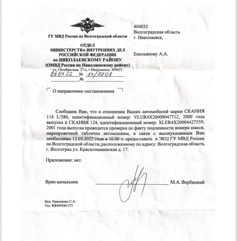 — При расставании мы с ней договаривались, что движимая и недвижимая часть имущества остаётся ей, а 2 седельных тягача, она переоформляет на меня, после чего мы их переоформили. Есть доказательная база этого, которая подтверждает, что она об этом знала, есть скриншоты переписки, квитанция, которую она оплачивала и куча всяких доказательств, которые просто нигде не воспринимаются. Завели на меня уголовное дело, которое продлилось на сегодняшний день уже больше года. А эти седельные тягачи покупал я за свои личные средства. Бывшие хозяева этих тягачей также дали показания, в которых они утверждают, что с ней никогда никаких дел не имели, что деньги они получали от меня, что полностью все договорённости по этим машинам они имели со мной. Они рассказали, что подписали договора со своей стороны и отдали мне, а на кого я их ставил, они не знают. Есть показания, есть эти договора, их запросили. В уголовном деле это все есть, но ничего не учитывается. Никто на это даже не смотрит, берут и делают свое. У нас были с ней договора аренды, потому что при работе мы использовали сайт, в котором заказчик интересуется собственниками транспорта, и для этого были формально составлены договора, которые я и предоставлял этим заказчикам. Эти договора были в организации, чтобы у налоговой не возникало вопросов. Кроме того, мы с ней договорились, что денежные средства я ей буду переводить, она будет 10% из этих денежных средств забирать себе, а остальные деньги, отдавать мне. Это, опять же, подтверждается выписками с расчётных счетов и в переписке. И тут она говорит, что ничего такого не было, что всё совершенно по-другому. Хотя, есть документы и есть скриншоты переписки, которые подтверждают обратное, но никто этому почему-то не верит, — рассказывает волгоградец.