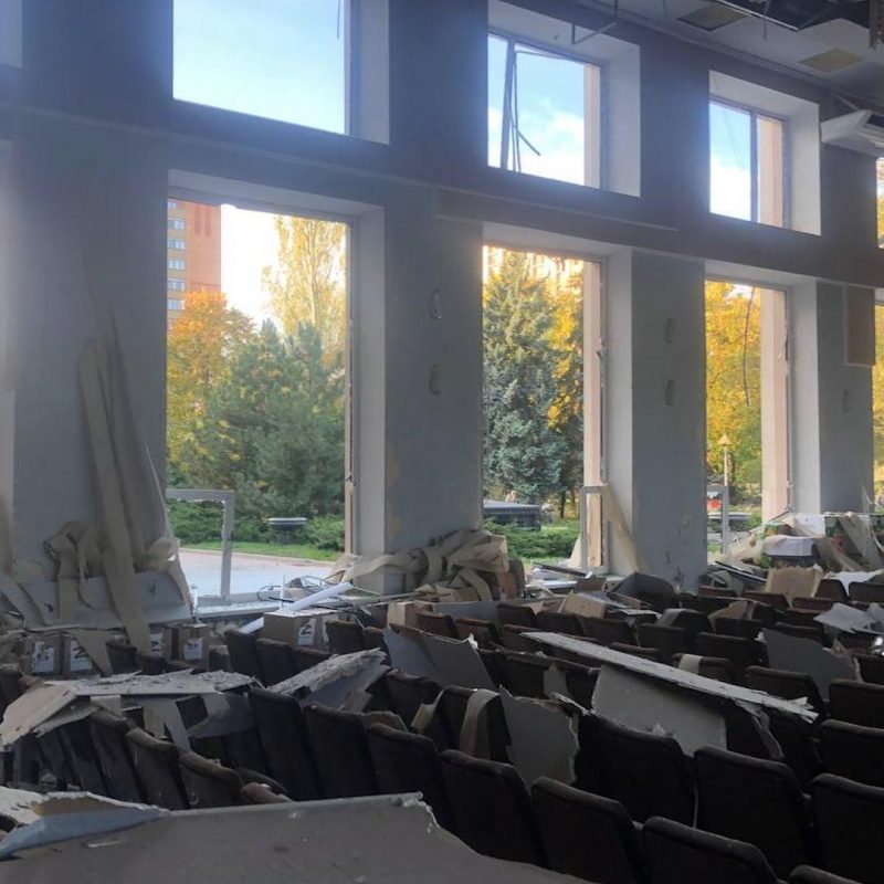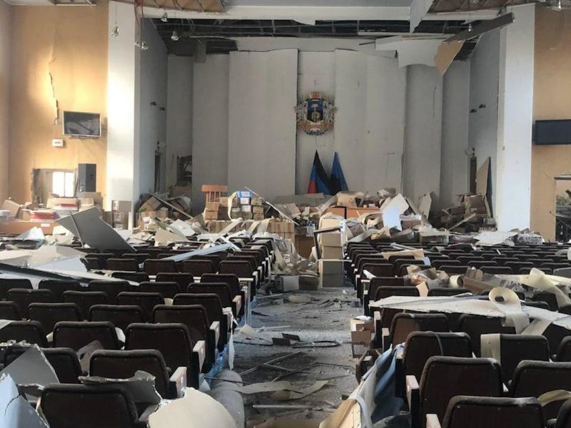 Один из снарядов, который националисты выпустили из американской реактивной установки залпового огня, попал в здание городской администрации. Ранены двое мирных граждан. Выбиты окна, разрушены залы, обломками завалены коридоры и парковка.