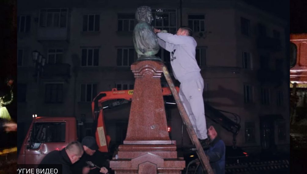 Как сообщает местное издание Житомир.инфо, памятник был «убран» из центра города. Сперва активисты сняли инициалы с постамента, а затем и сам бюст. Монумент стоял здесь с конца XIX века.