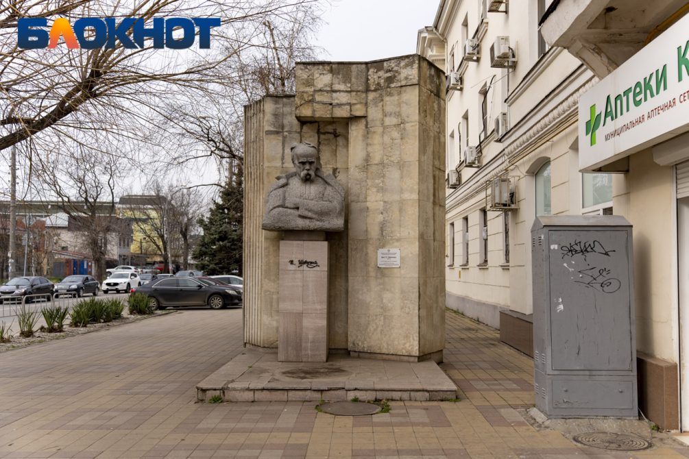 В Краснодаре к 16 марта на памятнике украинскому поэту Тарасу Шевченко появились надписи об Украине и реклама о продаже запрещенных веществ.