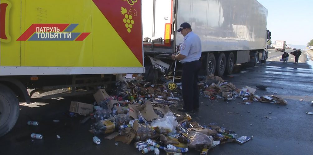 Неподалеку от места трагедии бригада рабочих ремонтировала автодорогу М5 «Урал», из-за чего на подъезде к Тольятти возникла гигантская пробка. В хвост этого затора на полной скорости и въехала фура, доверху загруженная спиртными напитками. Первым удар на себя принял тягач «Мерседес-Бенц» с полуприцепом. Столкновение было настолько сильным, что многотонный большегруз сдвинулся дальше и протаранил другие автомобили в своем ряду.