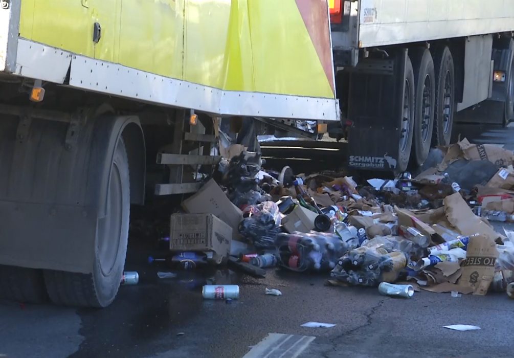 В результате столкновения был поврежден и кузов раздавленной фуры, откуда на проезжую часть и обочину вылетело много ящиков с вином, водкой, виски, коньяком, пивом и квасом. Полицейские организовали вокруг места ДТП дежурство с целью ограничить доступ мародеров на трассу.