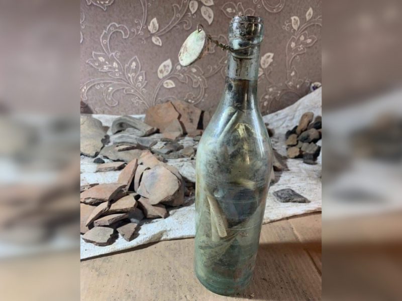 Сотрудники археологического общества «Наследие» вместе с Институтом истории и международных отношений ЮФУ провели раскопки на пересечении улиц Чехова и Седова. Когда археологи сняли верхний слой земли, то заметили бутыль с интересным содержимым.