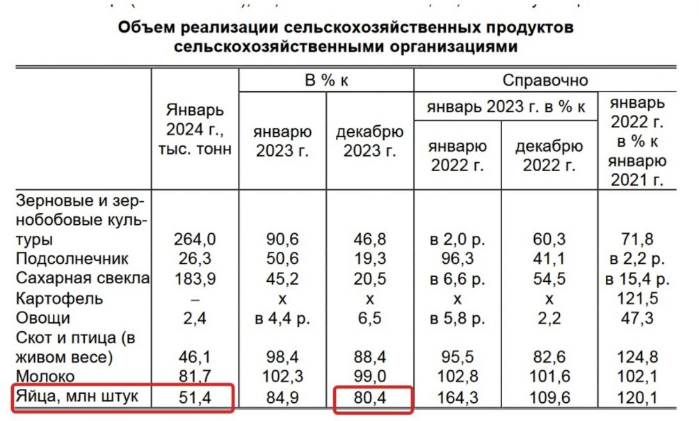В общей сложности, местными птицефабриками было реализовано 51,4 млн куриных яиц. Снижение продаж произошло на фоне резкого уменьшения производства на птицефабриках – почти на 16% по сравнению с январем 2023 года. Корреспондент «Блокнот Воронеж» связался с региональным Минсельхозом, с просьбой прокомментировать ситуацию. Чиновники признали проблему, однако толком причину её возникновения объяснить так и не смогли.